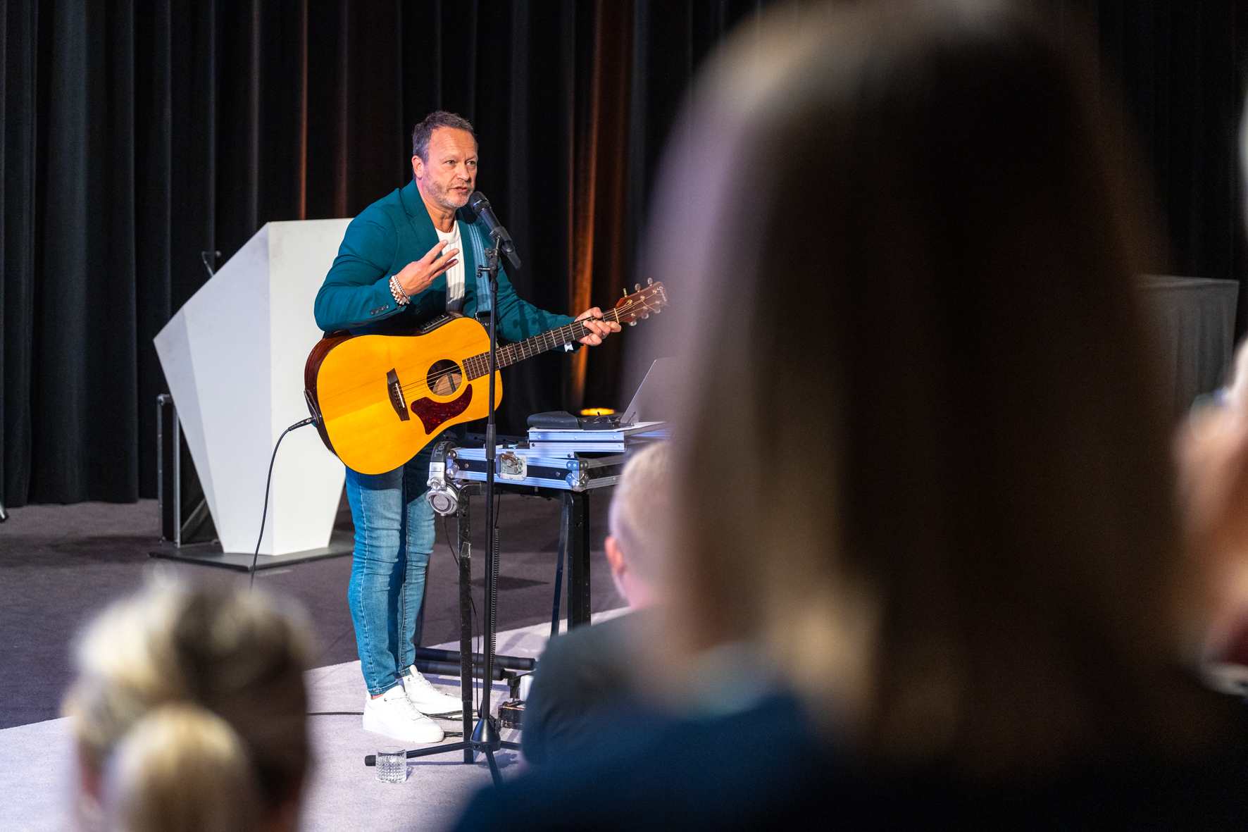5 Erwin begeleidt naar wens sprekers tijdens hun speech op gitaar. Dit is een krachtig middel en geeft de uitgesproken woorden meer lading, net zoals de muziek in een film terwijl de acteur spreekt. (Dit werkt vooral goed bij inspirerende verhalen en niet bij bijvoorbeeld financiële jaarverslagen)